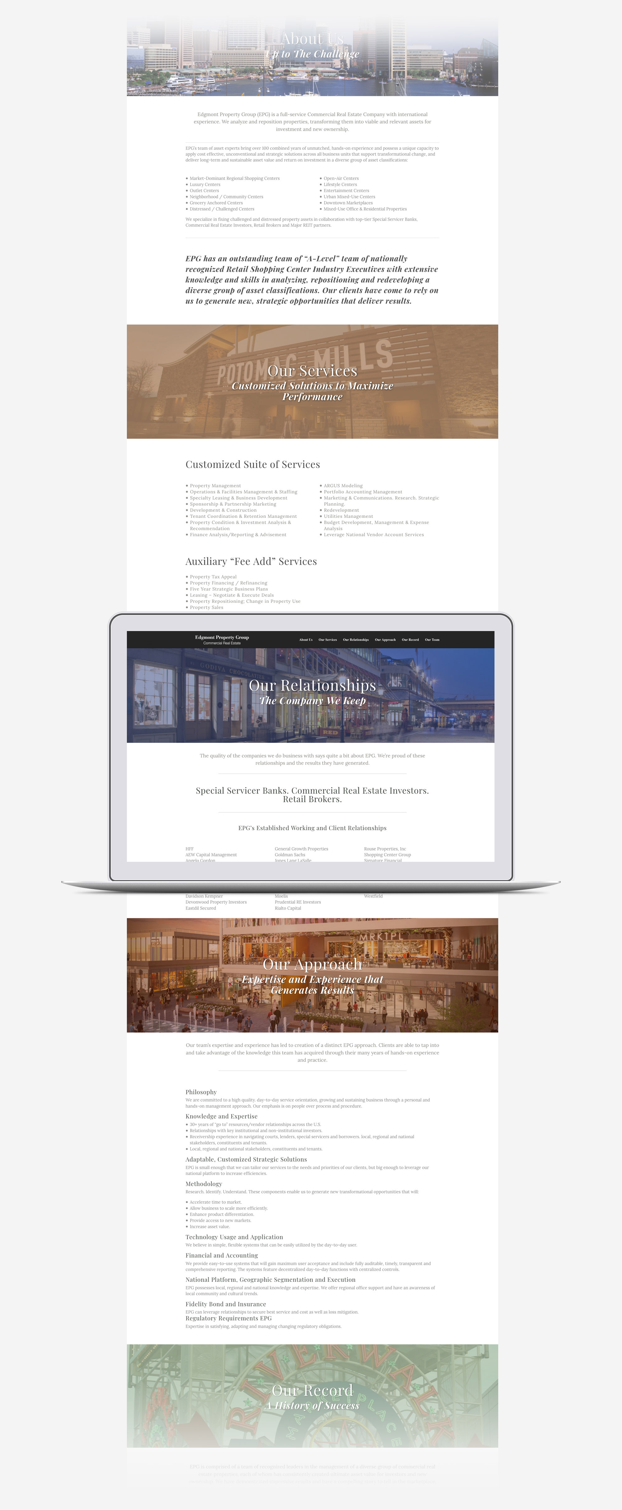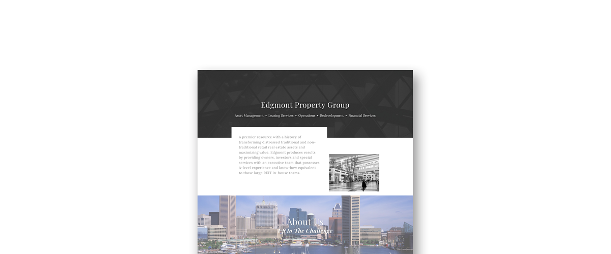 Bob Steiner, the CEO of Edgmont Property Group, wanted a new site that showcased their team of experienced people as well as the services that they provide and their cumulative history of success in the commercial real estate industry.