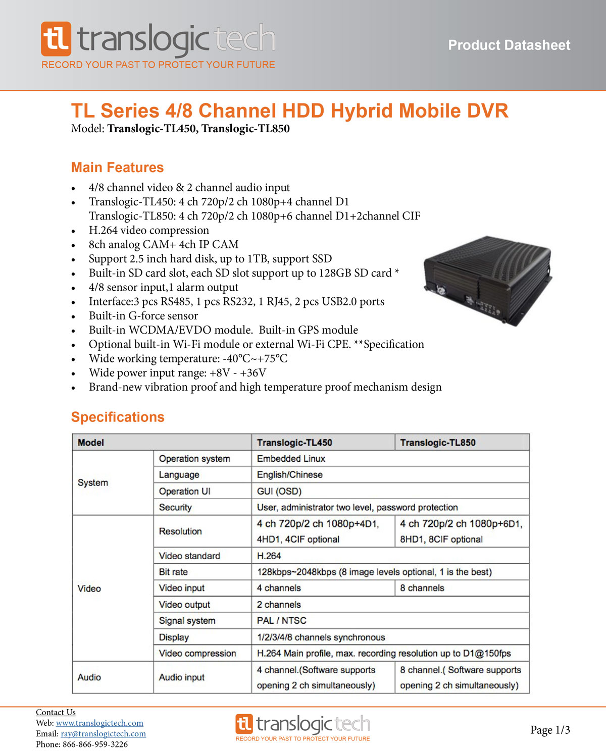 Translogic Tech provides in-vehicle camera solutions to the transportation industry.  Their goals are to provide safety for drivers and passengers as well as increasing fleet efficiency through vehicle monitoring services.
