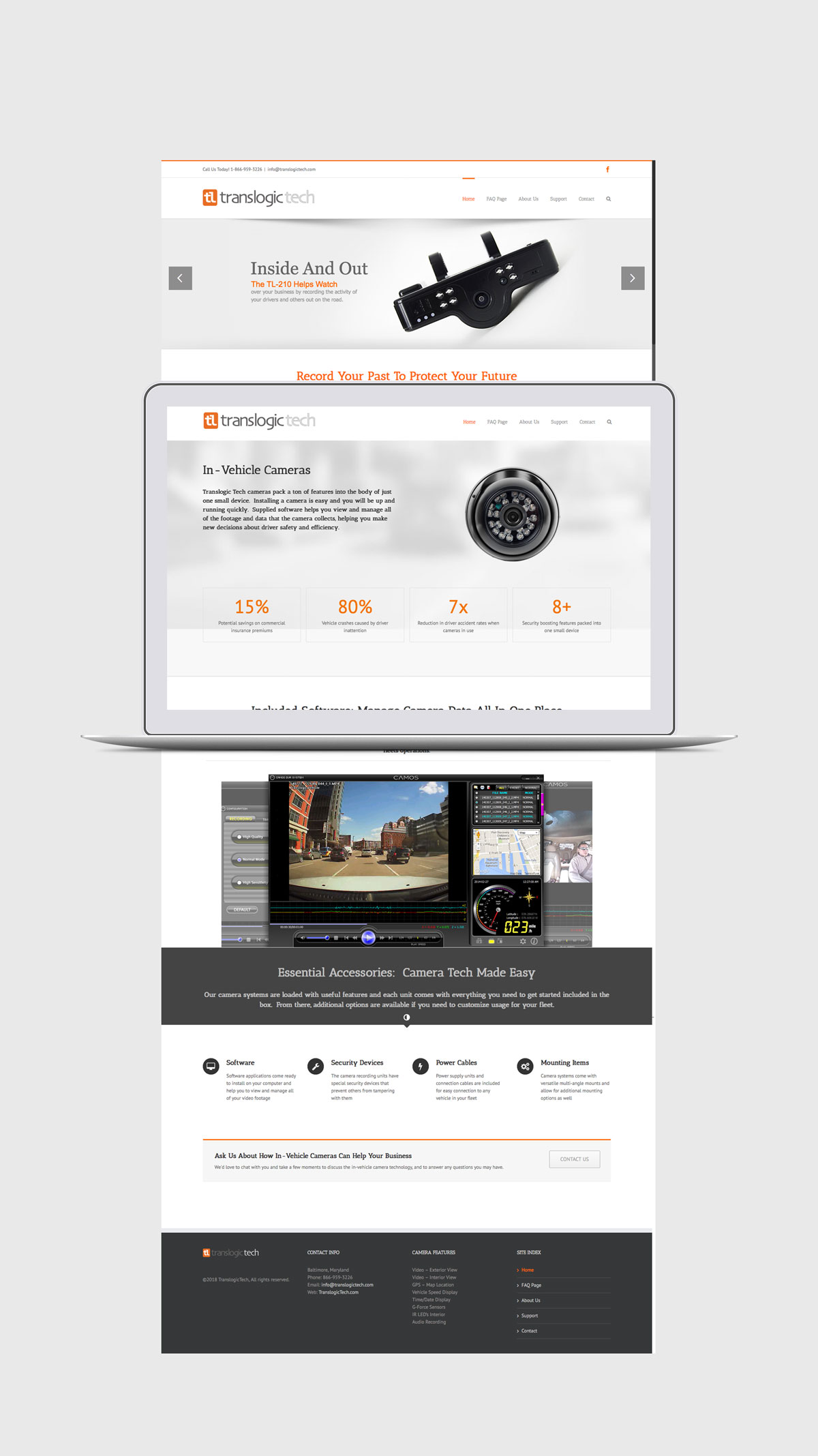 Translogic Tech researches and develops cutting edge camera technology for in-vehicle systems.  We wanted to showcase the camera technologies that Translogic Tech features with a modern edge.
